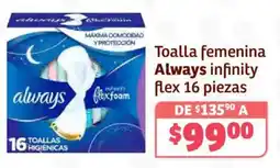 | Always infinity toalla femenina 16 pz | Soriana Híper | $135.90 | $99.00 | $36.90 Descuento | 29 enero 2026 | 11 febrero 2026 | |