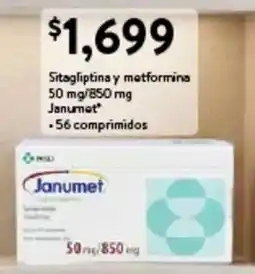 Walmart Express Janumet sitagliptina y metformina 50 mg/850 mg ofertaJanumet sitagliptina y metformina 50 mg/850 mg 56 compWalmart Express$1,699.0012 febrero 202621 abril 2026