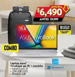 | ASUS Vivobook Go 14 + Mochila + Mouse | Sam's Club | $6,999.00 | 12 septiembre 2025 | 16 septiembre 2025 | |||
