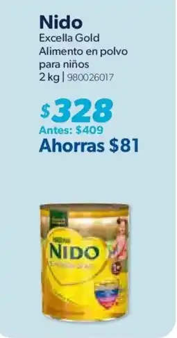 | 2 | Nido Excella Gold 2 kg. | Sam's Club | $409.00 | $328.00 | $81.00 Descuento | 01 abril 2026 | 01 mayo 2026 | Consultar oferta | |