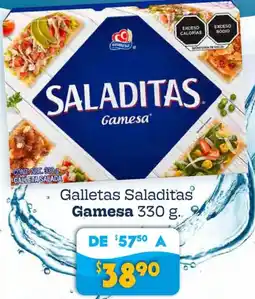 | Galleta Saladitas Gamesa 330 g. | Soriana Híper | $29.90 | 10 agosto 2023 | 16 agosto 2023 | |||