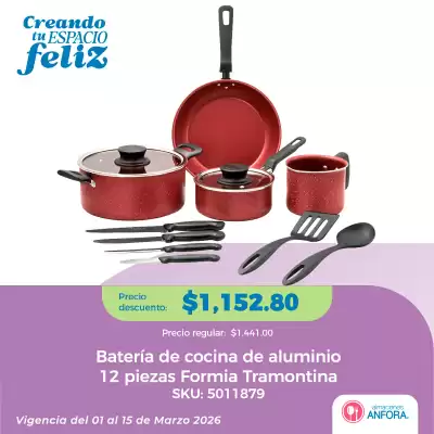 Almacenes Ánfora es una cadena de tiendas especializada en la comercialización de artículos de cocina. Desde 1940, Almacenes Ánfora ha sido la marcafavorita de amas de casa, hoteles y restaurantes gracias a su extenso encartede cocina, precios y por su amplia variedad de productos. La misión de Almacenes Ánfora es proveer los mejores artículos de cocina a los precios más accesibles para las familias mexicanas y así equipar sus cocinas con sólo lo mejor para sus proyectos culinarios. ¿Buscas equipar la tuya? Entonces entra al catálogo de Almacenes Ánfora y entérate de sus más recientes promociones.