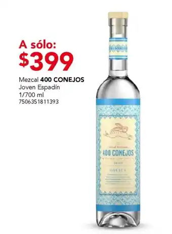 400 Conejos mezcal está ahora disponible con descuento en City Club. En esta página encontrarás toda la información relevante sobre precios actuales, condiciones de la promoción y el período de validez. También se muestran otras ofertas y promociones comparables relacionadas con 400 Conejos mezcal, para ayudarte a tomar la decisión más ventajosa al momento de comprar.