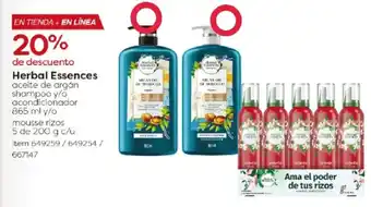 Costco ofrece una amplia colección de productos, además de Herbal essences aceite de argan shampoo y/o acondicionador. Mantente pendiente del Catálogo Costco semanal para encontrar las mejores ofertas y promociones. Además de Herbal essences aceite de argan shampoo y/o acondicionador, también podrás encontrar las siguientes ofertas: Herbal essences rizos mousse 200g, Creightons argan shampoo 250ml y Herbal essences ondas mousse 210ml.