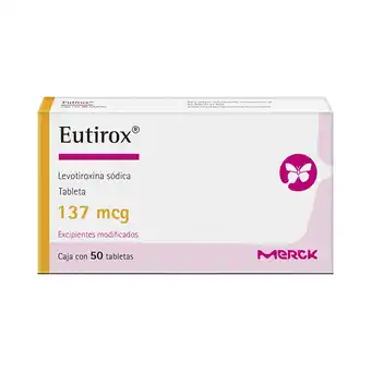 Esta oferta está disponible en varias tiendas, checa todos los productos para obtener la 137 mcg Levotiroxina Sódica más barata. Si deseas saber si este producto tiene un mayor descuento en otra tienda, consulta la categoría 'Farmacias y Salud'. También puede ser que te interesen estas ofertas: 100 mcg levotiroxina sódica, 25 mcg levotiroxina sódica y 200 mcg Levotiroxina Sódica.