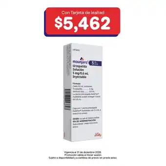 5 mg Tirzepatida/0.6 ml Solución ofertas y promociones en línea directas desde Farmacias Benavides