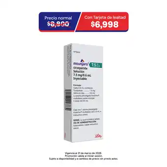 Promociones previstas de 7.5 mg Tirzepatida/0.6 ml Solución en Farmacias Benavides