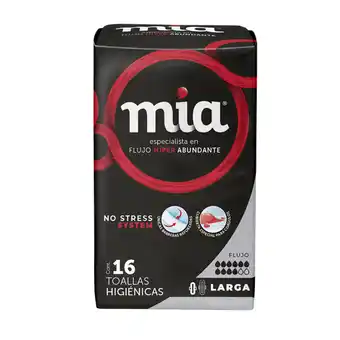 Toalla femenina mía larga flujo híper abundante 16 pzas
