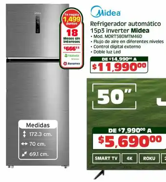 Midea refrigerador automático 15p3 inverter descuento en Soriana Híper