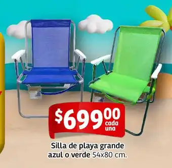 El precio de Silla de playa grande se puede encontrar en la parte superior de la página, junto con las fechas durante las cuales la oferta está vigente. También puedes consultar el precio en el Folleto Soriana Mercado vigente o en el sitio web de Soriana Mercado. Las ofertas promocionales te garantizan que comprarás los productos de Soriana Mercado al precio más bajo.