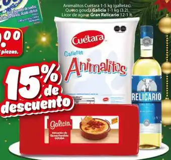 1-5 kg (galletas). Queso gouda Galicia 1-1 kg (3.2). Licor de agave Gran Relicario 12-1 It.
